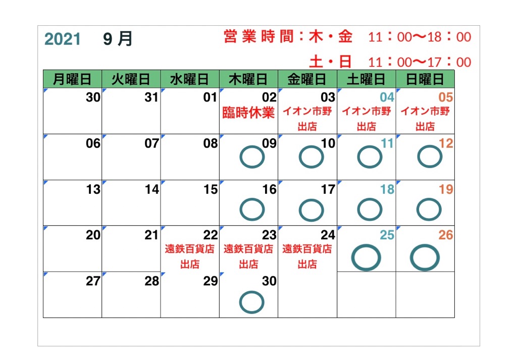 明日9時から完売まで市野のイオンで出店いたします🤗場所は一階のイオンと専門店の境目くらいのとこの特設の催事場💕とっても楽しみ〜🥳
