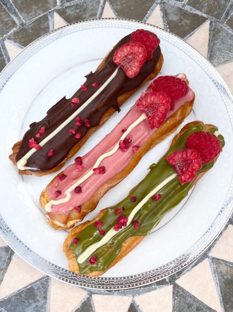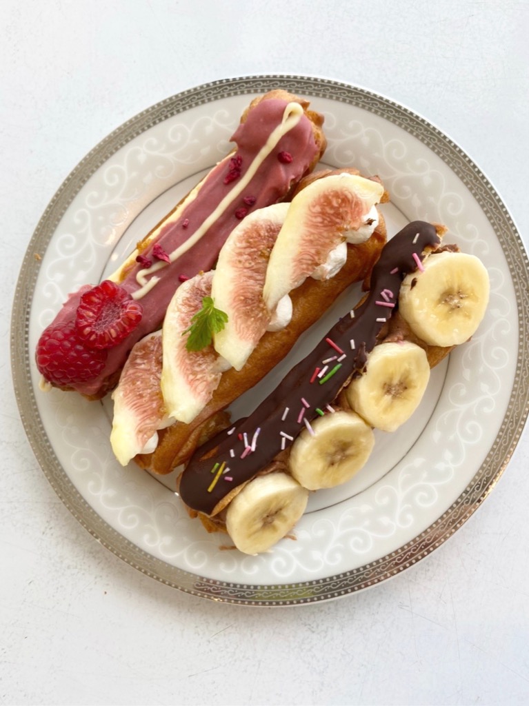 1日です!今月もメニューが入れ替わります😊✨上から苺チョコのエクレアいちじくのエクレアバナナチョコのエクレアです🙆♀️🌈✨バナナチョコは気まぐれで出していたんですが人気が高かったので仲間入り👩🏼🤝👩🏻ぜひ食べに来てね💕